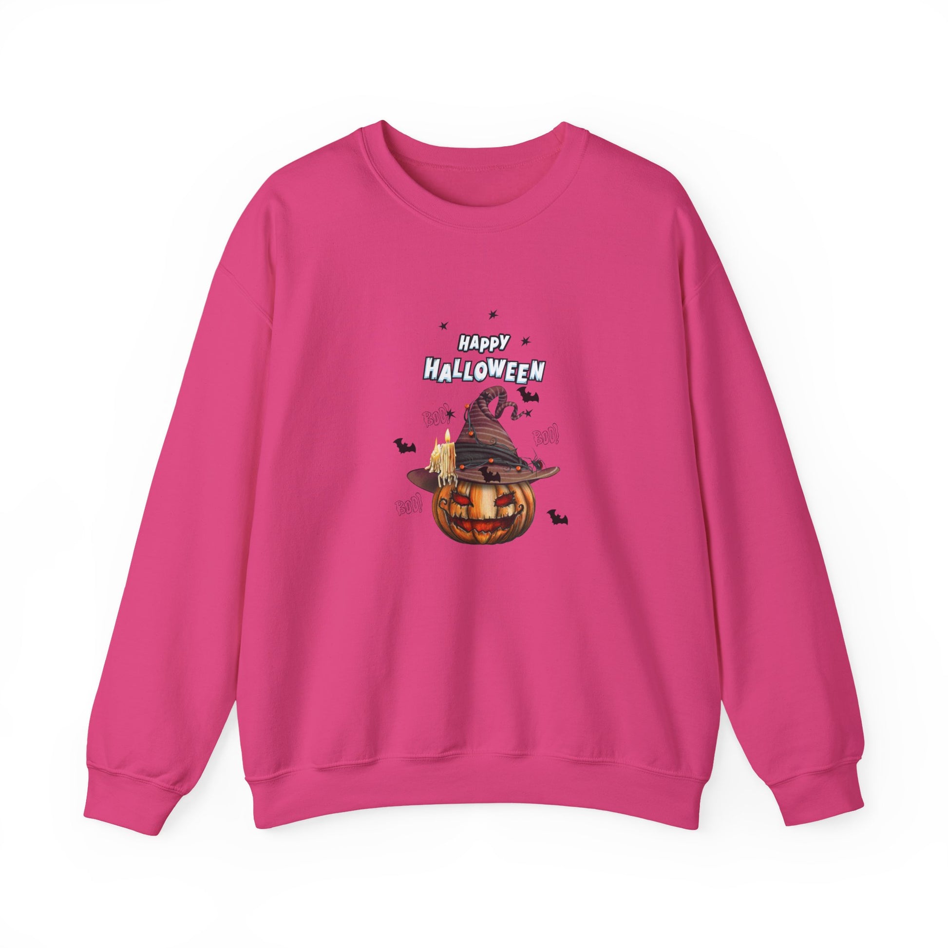 This cozy unisex heavy blend crewneck sweatshirt is perfect for celebrating Halloween in style. Adorned with a whimsical pumpkin design topped with a witch's hat, it brings a festive spirit and a touch of charm to your fall wardrobe. Crafted for comfort, this sweatshirt offers a clean-cut look that seamlessly fits into your casual outings or cozy nights in. Ideal for adults who love to embrace the holiday vibes, it's an excellent choice for Halloween parties, cozy family gatherings, or simply enjoying a pumpkin spice latte. The soft fabric will keep you warm as temperatures drop, making it a seasonal favorite. Celebrate the spooky season with flair while staying comfortable and stylish!